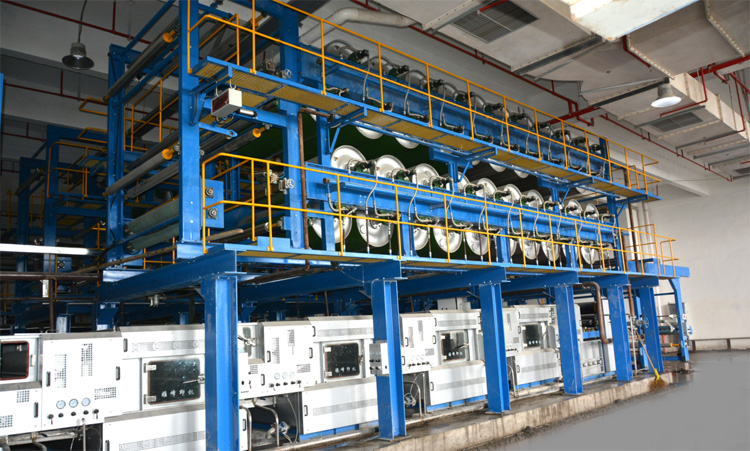6、預熱區采用粗導輥,多點共源分組變頻傳動,不易產生皺條,適應細支高密彈力織物的特別需要。
